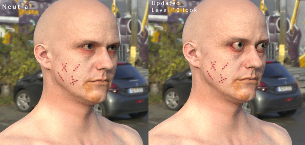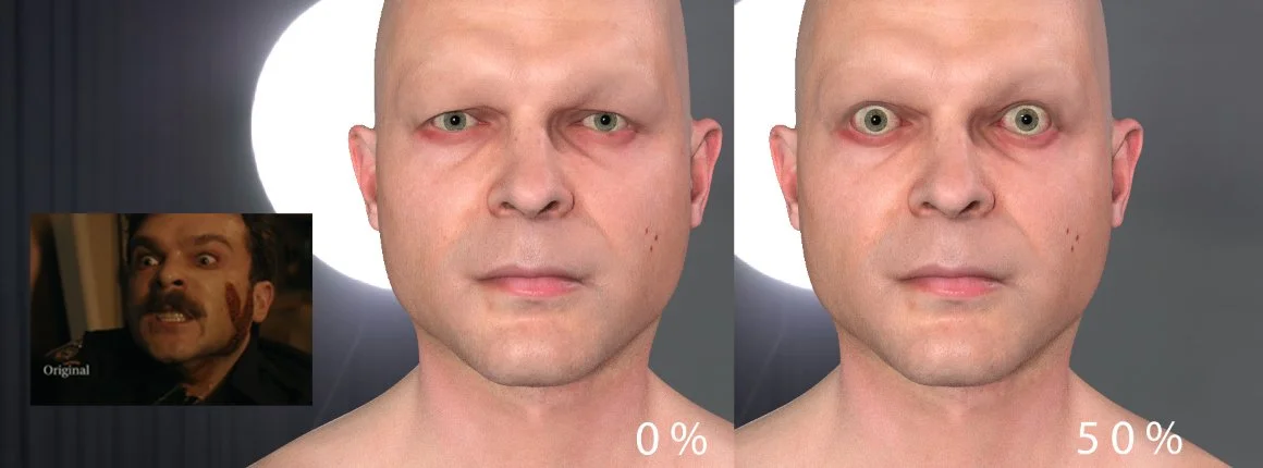 Entire CG heads were created, as this would allow entire eye regions to be composited over the actors.