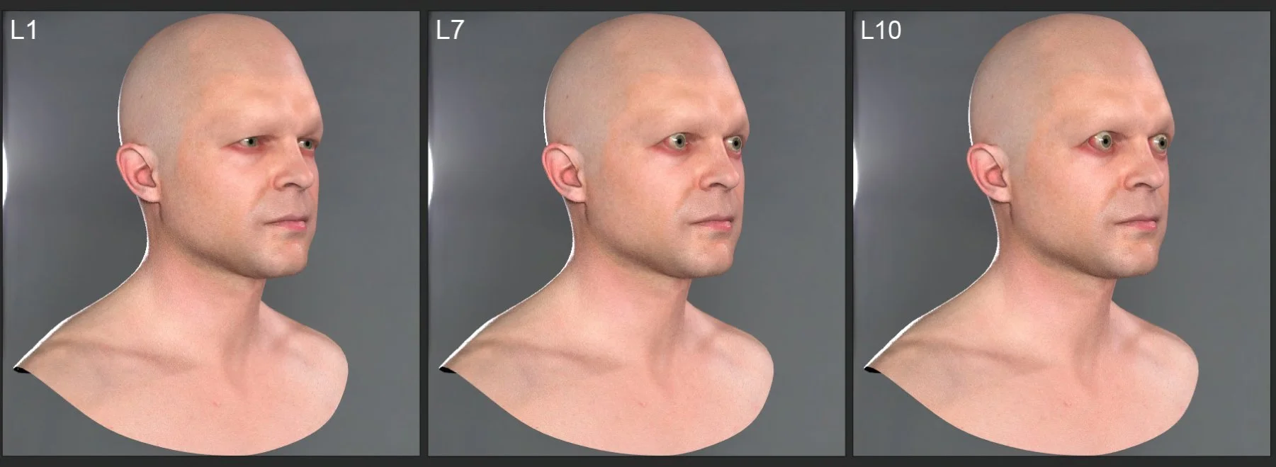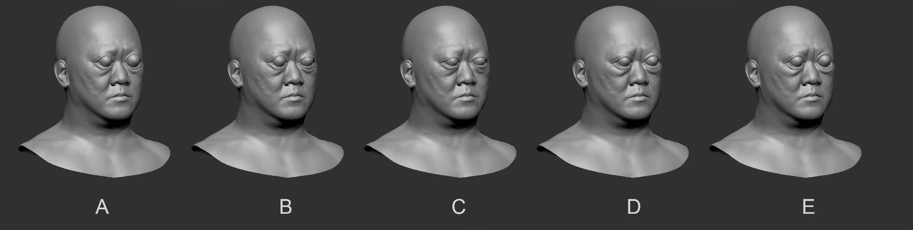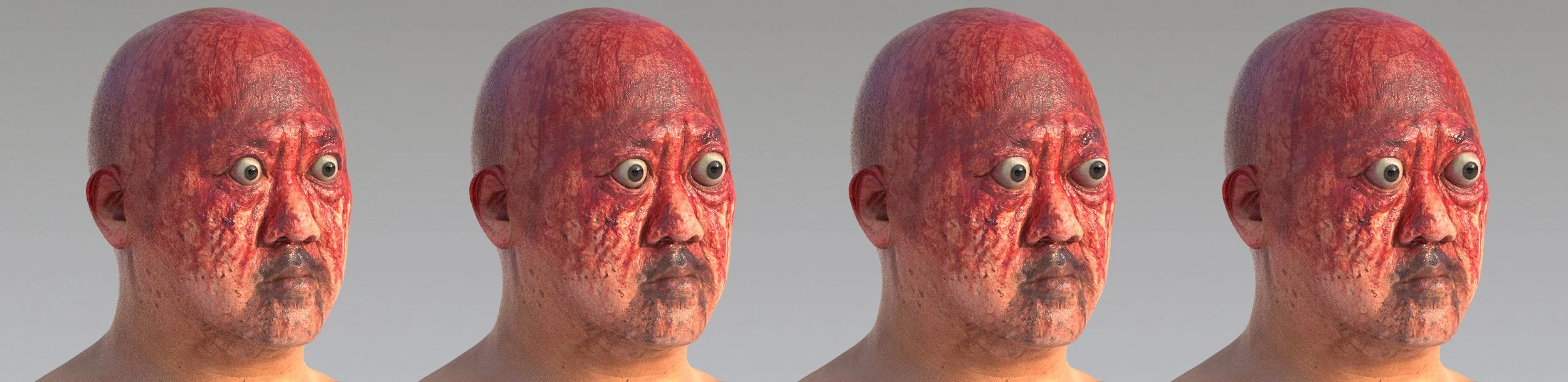 Initially inspired by images of people with graves disease, various iterations were created experimenting with asymmetry, different pupil and iris sizes, along with how far the eyes bulged out of the head.